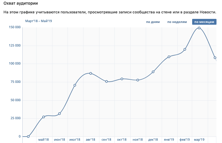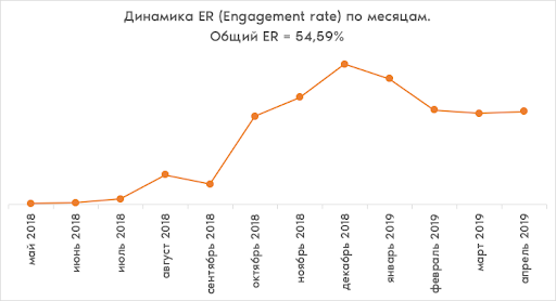 Подписчики стали активнее. Причем было видно, что интерес подогревала сама механика, а не приз, который порой вообще состоял из стикерпаков VK. В совокупности это существенно повышало показатели вовлеченности сообщества. С сентября по апрель среднее арифметическое ER подписчиков составило 18,65%.