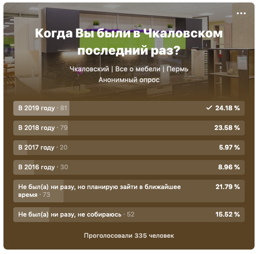 Для оценки релевантности проделанной работы мы провели исследование с целью выяснить, насколько приближены наши подписчики к целевой аудитории «Чкаловского».