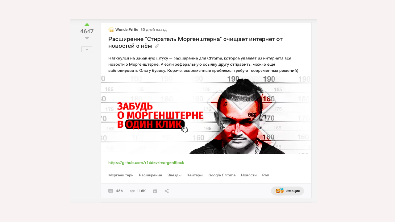 Таким образом мы пришли к идее сделать расширение, блокирующее новости о Моргенштерне.