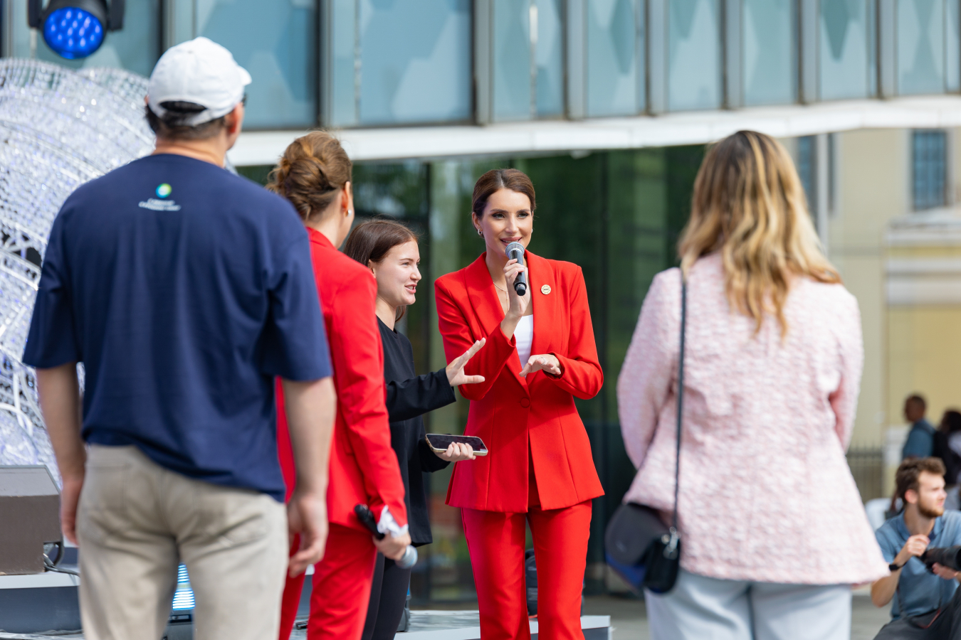 - Максимально широко охватить всю аудиторию парка «Зарядье» через мультимедийные возможности площадки и адаптированный под них контент мастер-класса, а именно: стрим мастер-класса на большой экран амфитеатра, интерактивные элементы программы, которые привлекают внимание на большой экран, блок про базовые навыки работы оператора, как брать интервью и правильно держать себя в кадре.