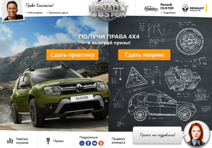 Бывает также, что одной из задач проекта является привлечение пользователей к какому-то действию. Например, в специальном проекте Renault Duster 4x4 одной из задач конкурса был сбор данных для CRM-базы клиента.