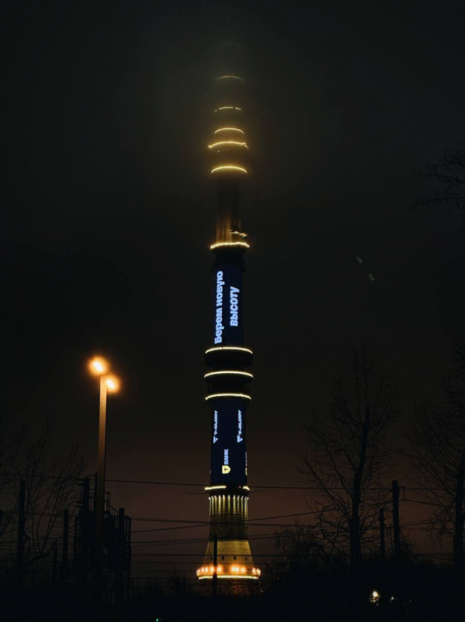 Отдельным визуальным акцентом кампании стал слоган проекта «Берем новую высоту», который появился на Останкинской телебашне.