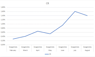 Показатели конверсии по источнику Google Ads выросли по обоим проектам после произведенной настройки.