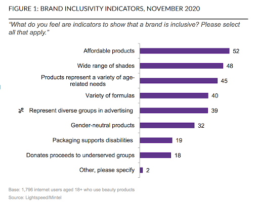 С ухудшением финансовой ситуации в мире после пандемии, ценовая доступность становится одним из новых критериев инклюзивности и продолжением движения “Beauty For All” (“Красота для всех”). Так, согласно опросу аналитичесеого агентсва Mintel в 2020 году, 52% считают, что доступная цена — главный показатель инклюзивности бьюти-бренда.