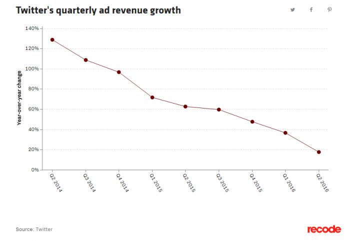Twitter, пожалуй, одно из самых непростых с точки зрения экономической судьбы социальных медиа. Несмотря на высокий потенциал по росту аудитории, сервису ни разу за свою 10-летнюю историю не удалось закончить год без убытков. В прошлом году, несмотря на рост выручки, компания все равно закончила год более чем с полумиллиардным в долларах убытком.