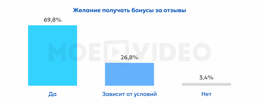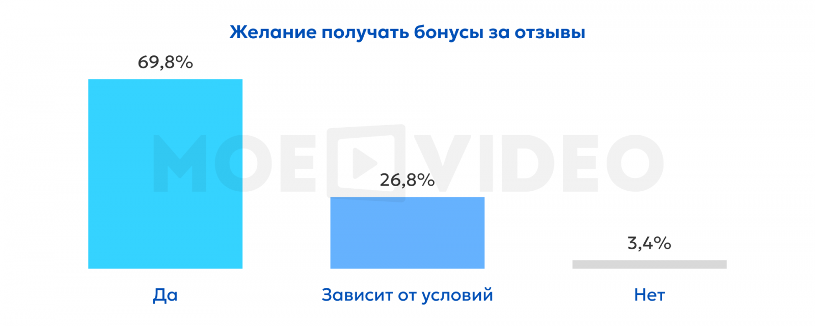 Подавляющее большинство респондентов открыты к вознаграждению за создание UGC: 69,6% готовы участвовать напрямую, 26,8% при условии адекватного и удобного бонуса; лишь 3,4% отказались полностью. Однако многие воспринимают вознаграждение не как плату за отзыв, а как знак признания при условии искренности и прозрачности процесса. Это означает, что материальная мотивация эффективна только в системе, где ценятся честность, релевантность и добровольность, иначе UGC рискует утратить доверие и стать формальным маркетинговым инструментом.