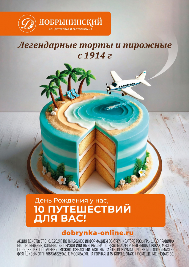 Ключевым элементом кампании становится яркий и динамичный креатив, приуроченный к дню рождения бренда «Добрынинский», что добавляет дополнительный элемент значимости в акцию. Центральным образом является аппетитный торт, а дополнительным акцентом — самолет, заходящий на посадку, символизирующий главный оффер кампании — розыгрыш 10 путешествий.