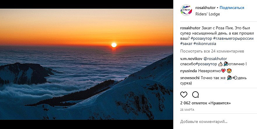 Курорты «Роза Хутор» и «Бобровый лог», фото из соц.сетей