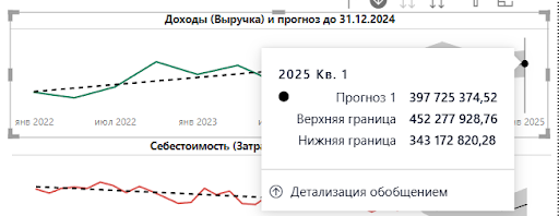 В начале каждого года отдел финансов формирует прогноз по году для всех наших доходов/расходов. Для такого прогноза удобен Power BI, где есть понятная функция прогнозирования с учетом выраженной сезонности, исторического тренда по объемам, корректно настроенного доверительного интервала.
