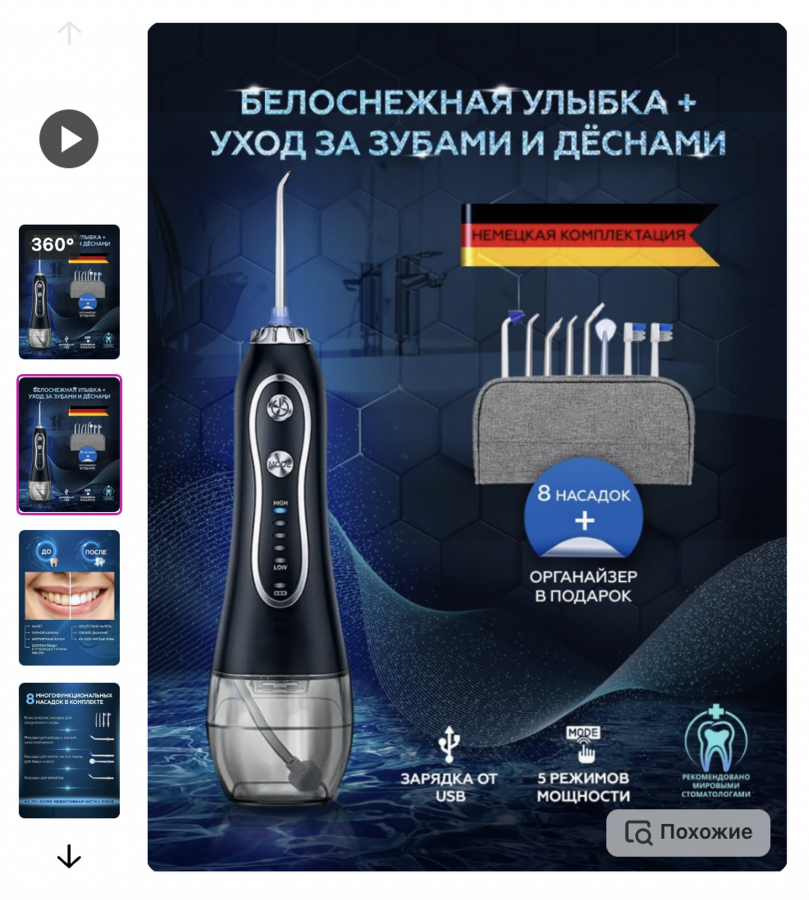 Используйте инфографику — с её помощью карточка выделяется в общей поисковой странице, а покупатель сразу же замечает ключевые характеристики. Особенно актуально будет разместить текст на фото для сложных товаров, таких как электроника или бытовая техника.