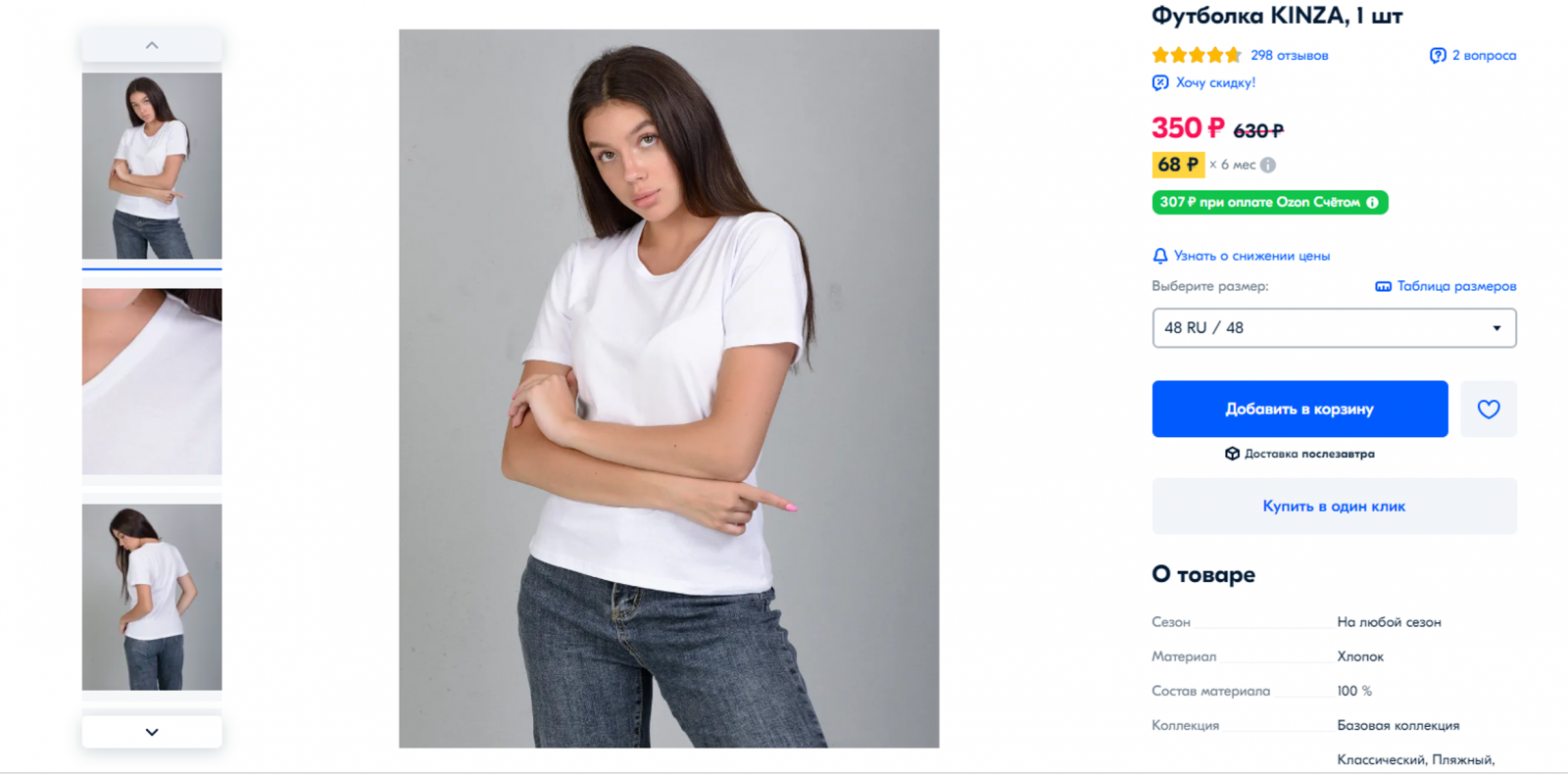 Некоторые категории товаров лучше демонстрировать на моделях: одежду, обувь, аксессуары. Когда вещь показана на человеке, покупателю легче представить, как она будет смотреться и на нем. Проверьте, чтобы товар выглядел опрятно и аккуратно — одежда должна быть выглажена, без загибов и лишних деталей.