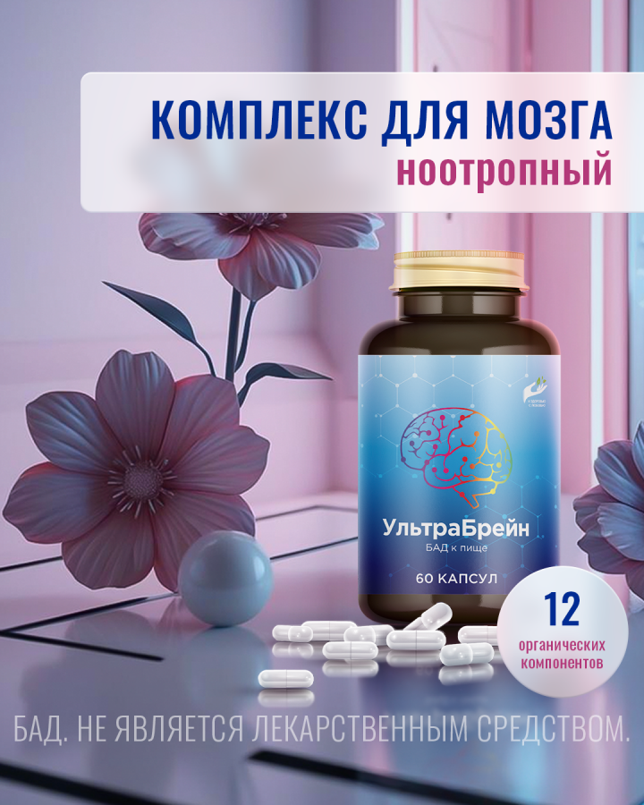 «Ультрабрейн» — ноотропный комплекс из 12 органических компонентов, которые улучшают память, концентрацию и внимание, а также поддерживают уровень энергии в течение дня. Продукт представлен на крупнейших маркетплейсах России — Ozon и Apteka.ru.