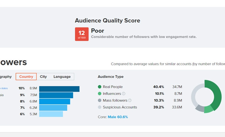 HypeAuditor использует искусственный интеллект, который и выдает итоговую оценку, Audience Quality Score (AQS) — показатель, объединяющий несколько метрик.