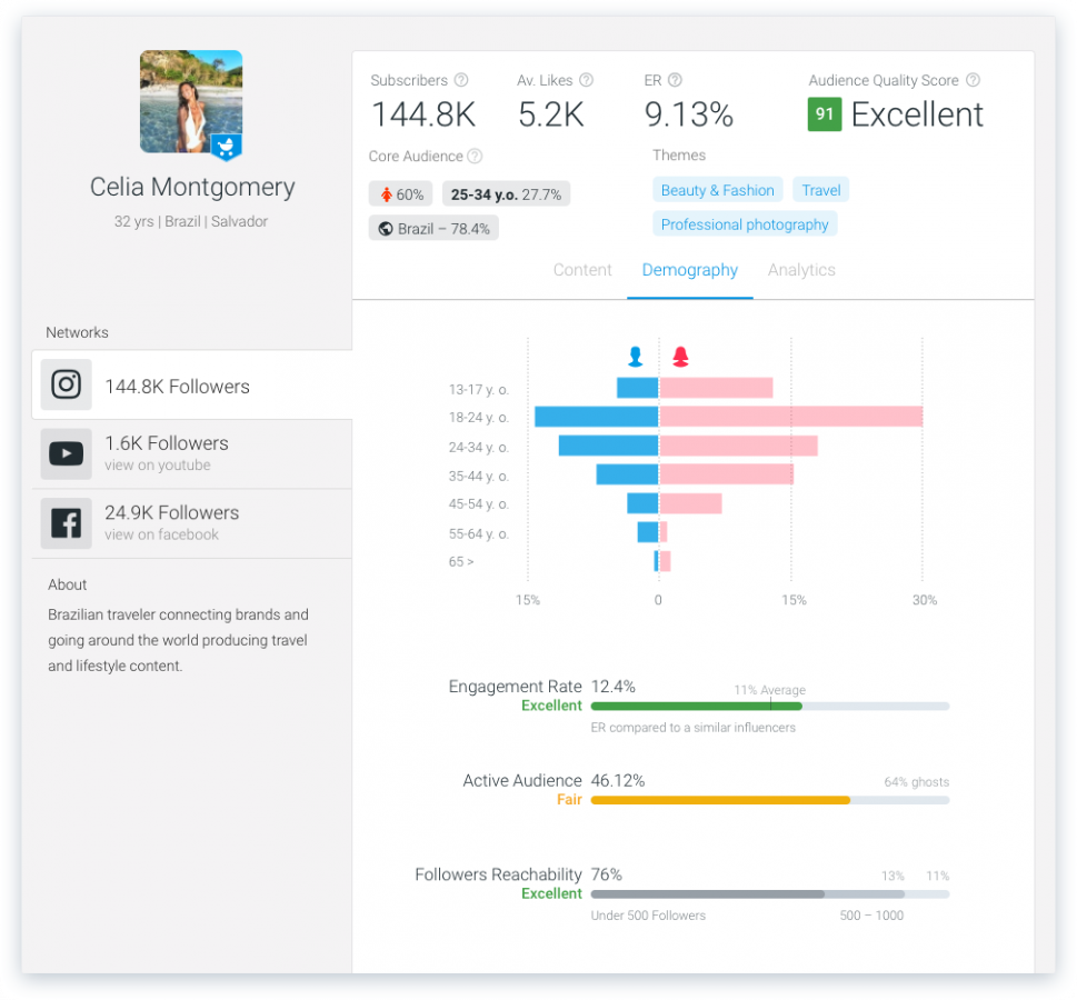 Сервис для анализа аудитории в Instagram. Благодаря ему можно оценить качество аудитории — есть данные об активности пользователей, их типах, досягаемости.