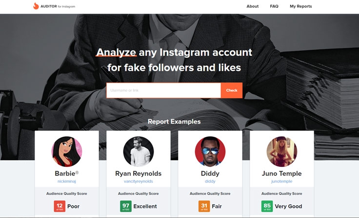 Еще один российский сервис для проверки Instagram-аккаунтов на накрутки и ботов. Позволяет узнать реальное количество фолловеров у аккаунта, исключая купленных, массфолловеров и коммерческих аккаунтов, отделить настоящие лайки от купленных, а реальные комментарии — от накрученных. Предлагает шесть тарифов.