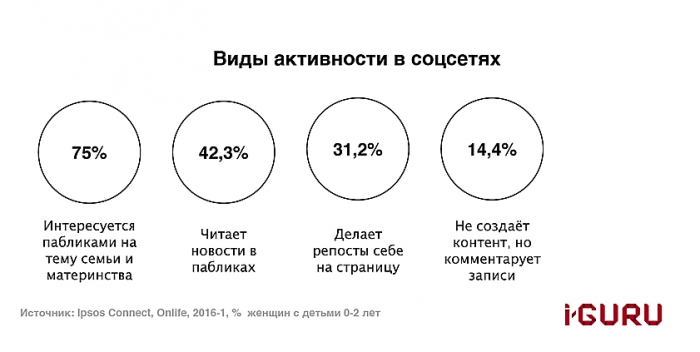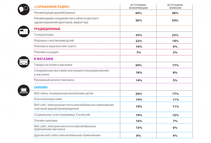 Не смотря на то, что основными источниками получения информации для молодых мам до сих пор остаются традиционные СМИ и сарафанное радио, сегодня эта аудитория активно присутствует в интернете.
