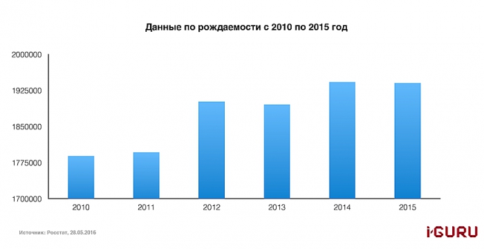 В последние пару лет рождаемость в России остается по-прежнему высокой. Например, количество новорожденных в 2015 году составило почти два миллиона человек. Однако в последующие годы эта тенденция обещает пойти на спад.