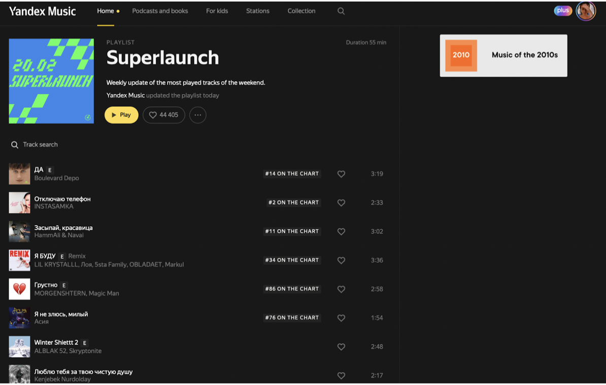В первый же день после релиза все треки альбома попали в «Чарт Яндекс Музыки».