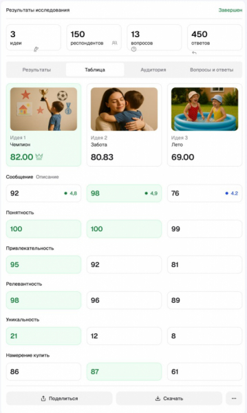 - Провели тестирование трех сторибордов параллельно: на фокус-группе и через Fair Lab.