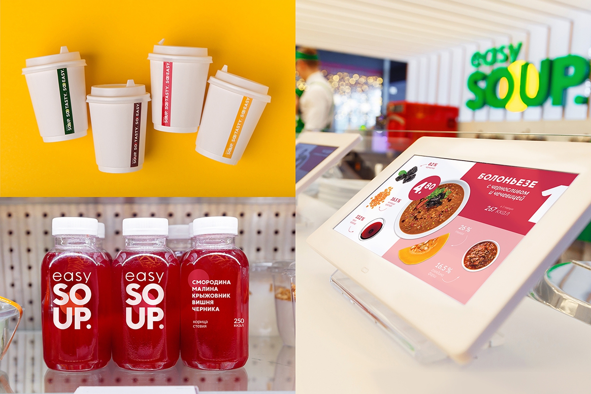 Нам важно было показать экспертную составляющую бренда. Easy Soup — это место, где вкусная и здоровая еда сочетается с качественным и быстрым обслуживанием.