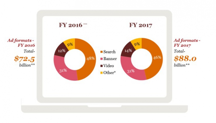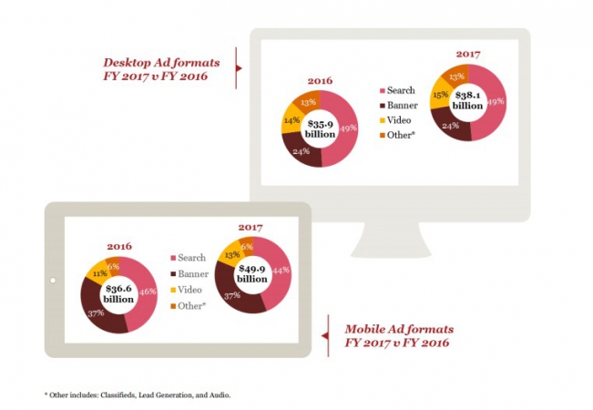Согласно отчету, расходы на цифровую рекламу в США по итогам прошлого года достигли рекордных $ 88 млрд и показали рост на 21%. Мобильный сегмент, который с 2016 года занимает более половины американского диджитала, продолжает быстро расти. Цифровое видео остается ключевым драйвером роста рынка. При этом мобильная видеореклама впервые обогнала десктопную.