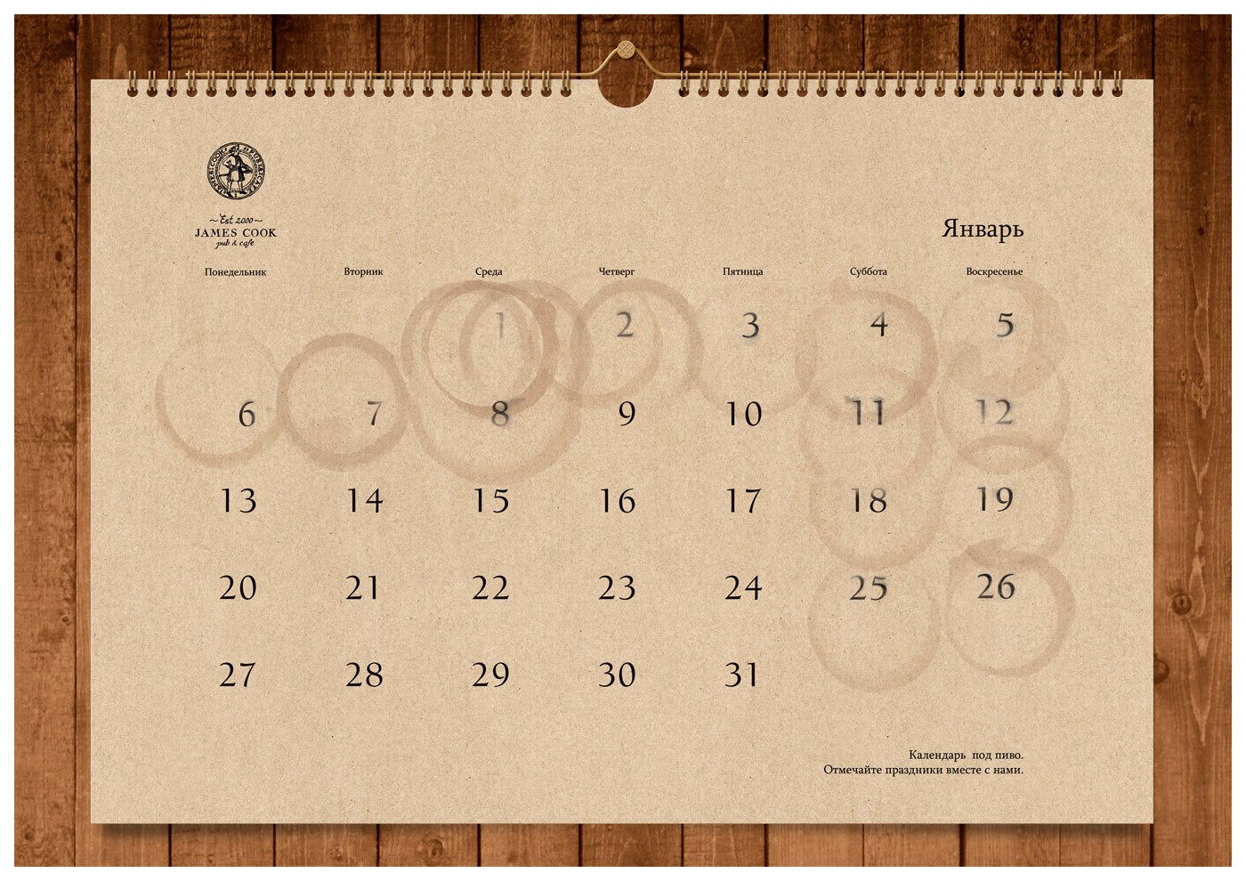 Брендинговая компания :OTVETDESIGN разработала необычный календарь на 2014 год для сети пабов James Cook Pub&Cafe.