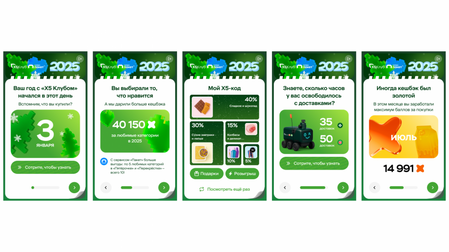 Для нас было важно создать формат, который не просто подводит итоги, а показывает выгоду всех продуктов Х5, которые отвечают за клиентский опыт. Впервые в одном проекте мы собрали преимущества трех сервисов, что позволило каждому пользователю увидеть, как суммарная лояльность работает на него каждый день — от покупок до подписок и партнерских сервисов.