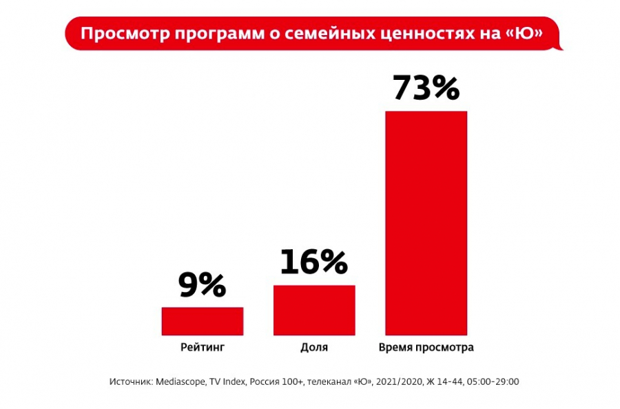 Объём программ канала «Ю», ориентированный на семейные ценности в связи с интересом аудитории за год вырос на 60%.