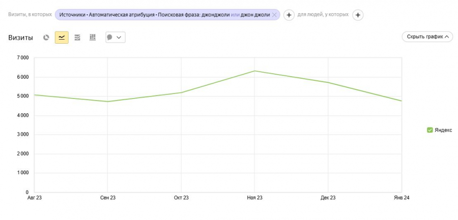 Чтобы убедиться, что рост посетителей по транзакционным брендовым запросам вызван запуском брендовой кампании, а не всплеском интереса к бренду или сезонными факторами, мы отслеживали все переходы по брендовым запросам из органики.