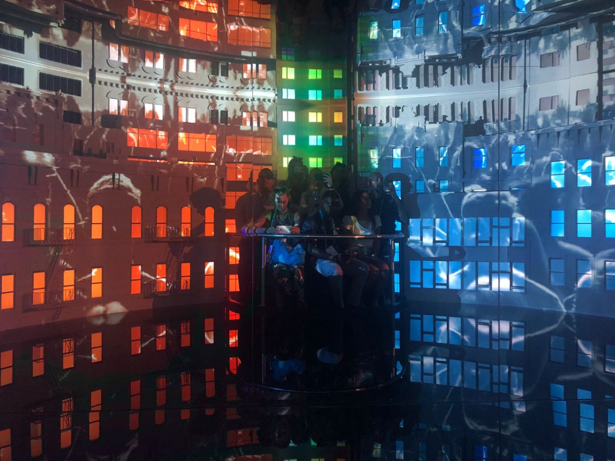 Это цилиндр из проекционных миниатюрных многоэтажных архитектурных фасадов, которые окружают зрителя. Окна домов — это экраны, передающие визуальные повествования, которые рассказывают люди. Проекции покрывают всю поверхность капсулы внутри и бесконечно отражаются между зеркалами и водой. Как объяснили представители компании, благодаря этой установке Instagram показывает, как рассказывание историй может стать катализатором для построения сообщества и сближения мира.