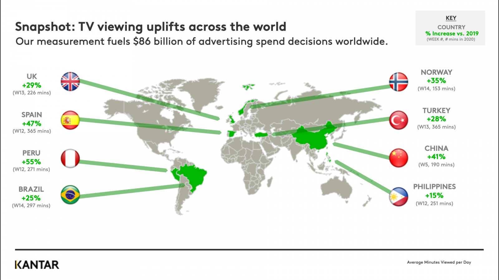 После введения карантинных мер телесмотрение выросло не только в России, но и по всему миру. Британское подразделение Kanatar подготовило об этом специальный доклад (есть в распоряжении Sostav), в котором также рассказало, что будет с телевидением после окончания изоляции и какими последствиями для брендов рекламодателям грозит снятие сейчас кампаний.