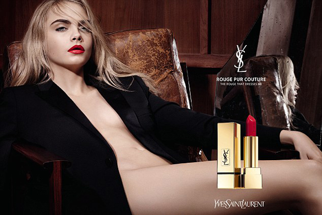 Компания Yves Saint Laurent запустила откровенную рекламную кампанию с участием Кары Делевинь. Модель обнажилась в поддержку красной помады Rouge Pur Couture.