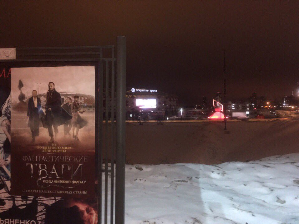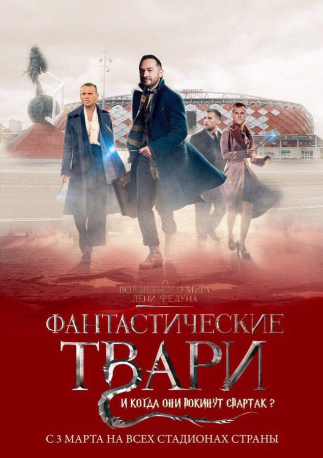 В конце февраля в Москве появились нестандартные принты: на якобы афишах фильма «Фантастические твари» появились лица игроков футбольного клуба «Спартак» и его владельца Леонида Федуна.