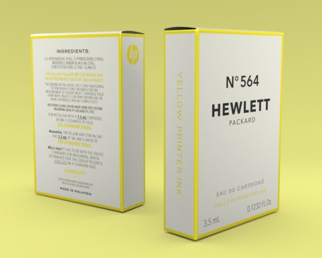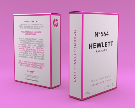 «Проект направлен на решение вопроса о расхождении между ценой продукта и его содержанием,- комментирует дизайнер. - Я создала этот проект, чтобы показать, что чернила для принтера Hewlett Packard стоят и расходуются также, как духи Chanel».