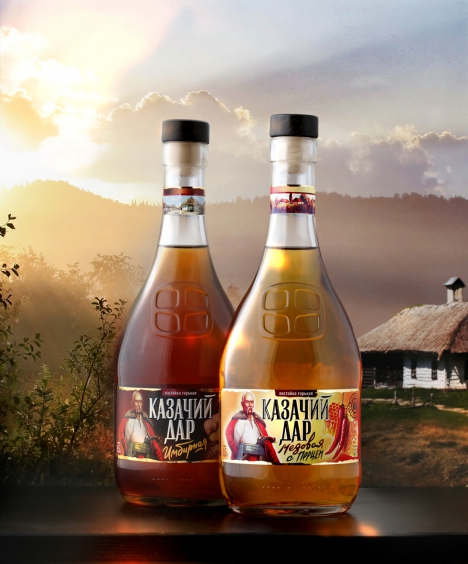 Настойка создана на основе старинных казачьих рецептов - именно эту особенность подчеркнули креаторы в дизайне алкогольного напитка.