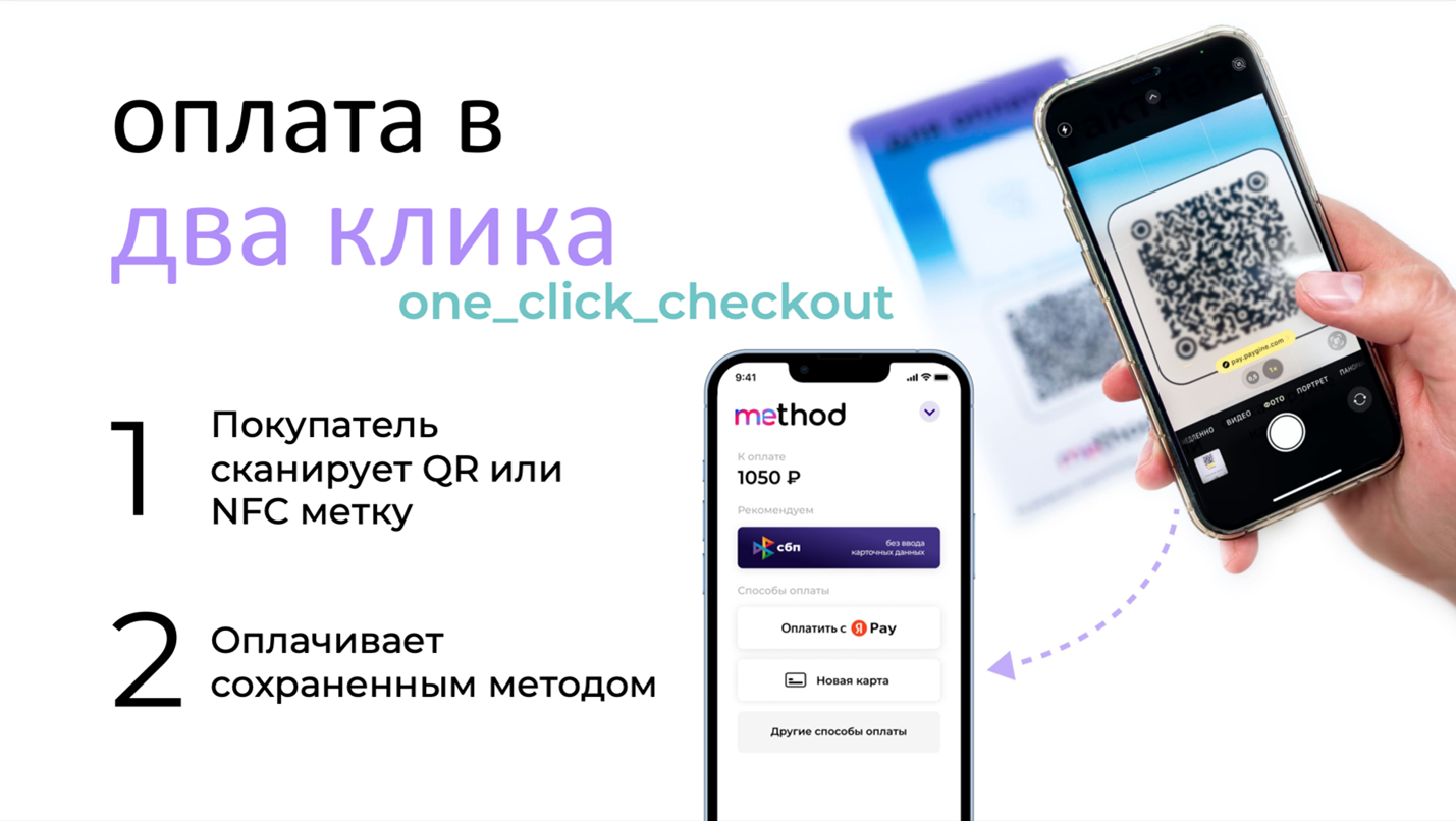 Метод — это платежная экосистема для бизнеса, которая включает в себя возможность проведения безналичных платежей в онлайн и офлайн. Продукт может применяться широко в зависимости от вида бизнеса: оплата на сайте, оплата меню по QR-коду, в приложении, а также в офлайн: можно выводить QR на экран дисплея кассира, смартфон, печатать QR на чеке, разместить табличку с QR и NFC на кассовой зоне или приклеить QR для оплаты на столы в заведениях и даже напечатать QR на футболке официанта.
