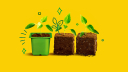 Акварельная графика и рукописные шрифты доносят идею рукотворности и волшебства. Сочный зеленый цвет логотипа и информационных элементов создает ассоциации с пышной зеленью растений. Яркие и необычные продуктовые зоны демонстрируют эффективность удобрений и грунтов.