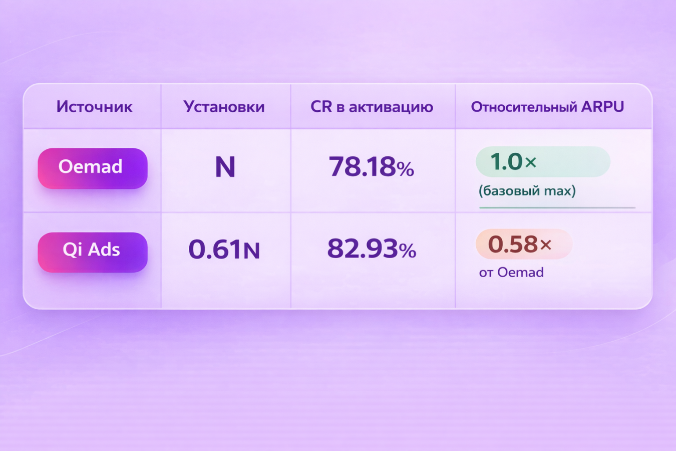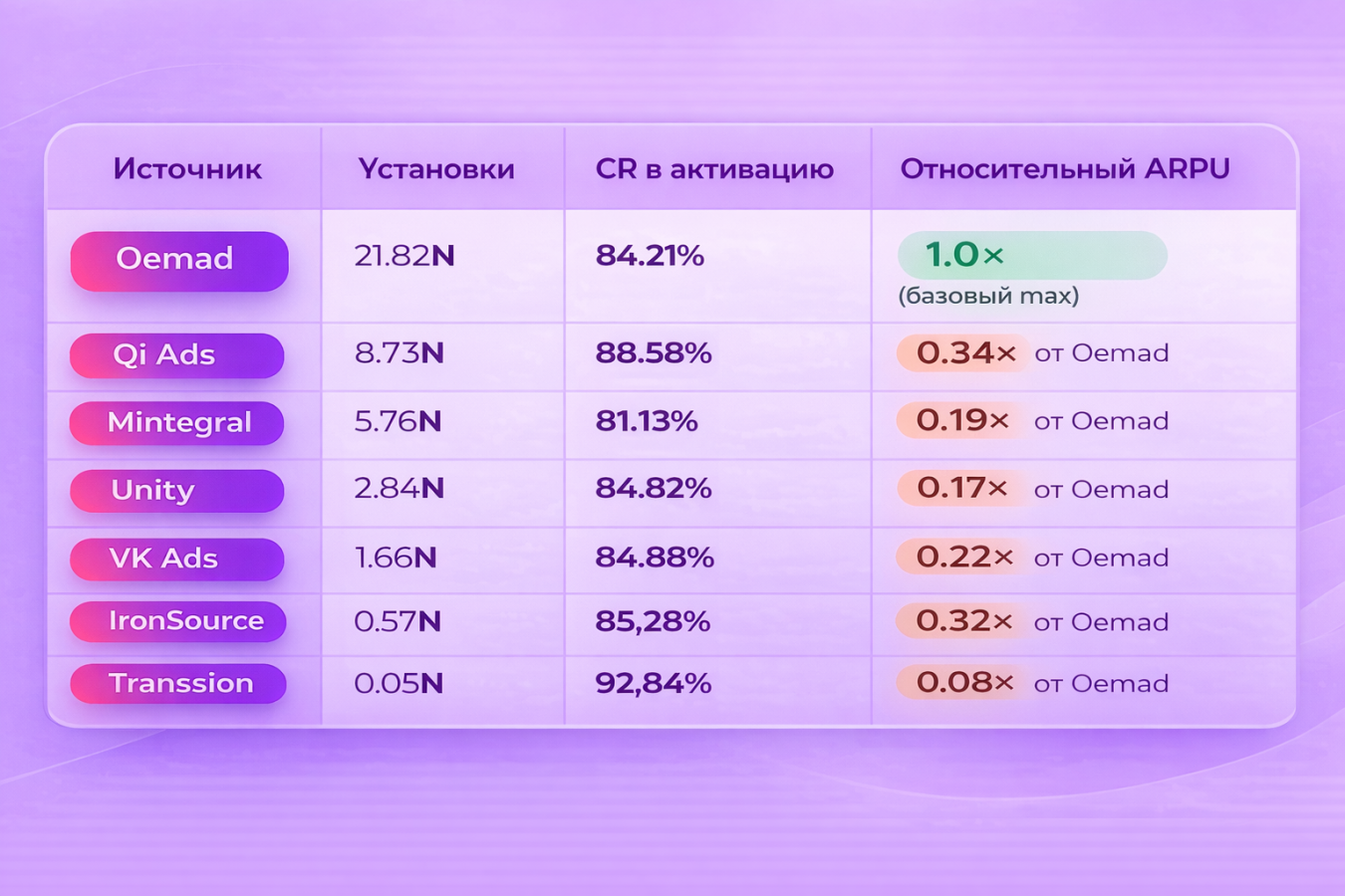 Таким образом, наша команда не просто добавила новые источники, а доказала, что OEM-инвентарь может быть драйвером в привлечении активных пользователей с высоким LTV или RR (Return Rate).