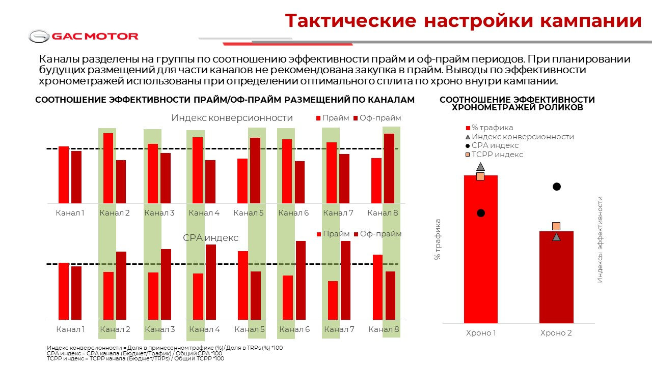 Главное преимущество подхода — возможность построить полноценную аналитику и выявить оптимальные решения даже по одной рекламной кампании. Для новых игроков рынка, таких как GAC MOTOR RUS, это означает возможность точного планирования и оценки эффективности кампании без опоры на большой объем исторических данных — ключевая задача при выходе в новые для бренда медиа и запуске новых продуктов. Такой подход особенно важен, когда каждый рекламный рубль должен работать максимально эффективно.