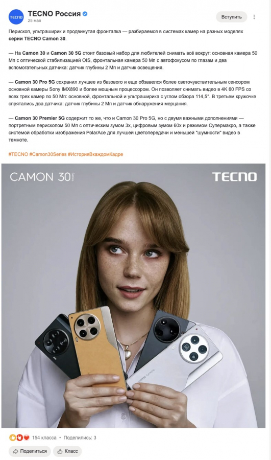 Каждую неделю команда TECNO составляет список постов, которые показали самый лучший органический прирост. Эффективность оценивают по ERR, также учитывают число просмотров и лайков, отбирая таким образом наиболее успешные публикации.