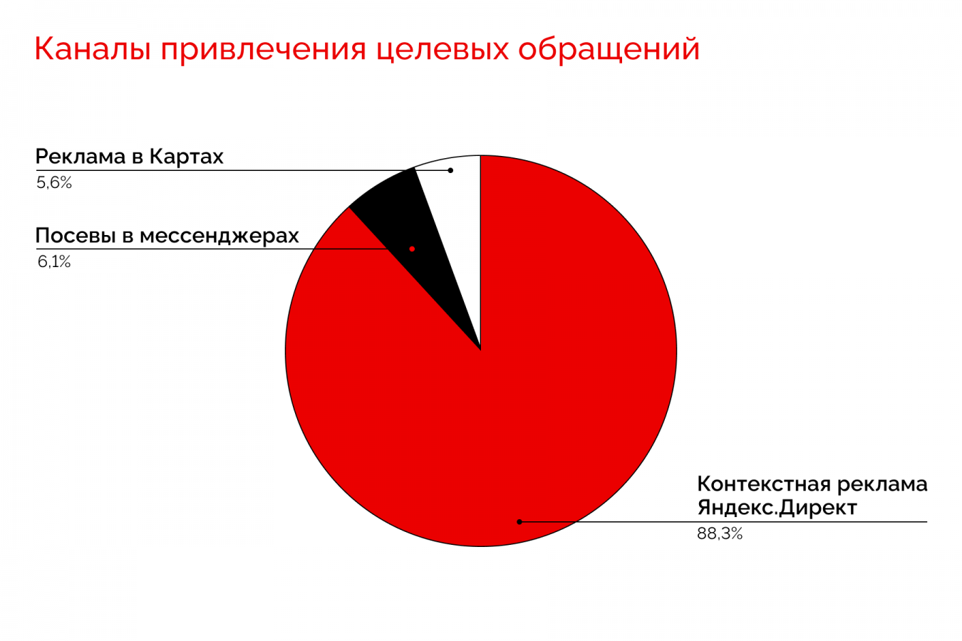 В рамках контекстной рекламы больше всего целевых обращений было получено с брендовой РК на поиске по Нижнему Новгороду и с общей РК в сетях.