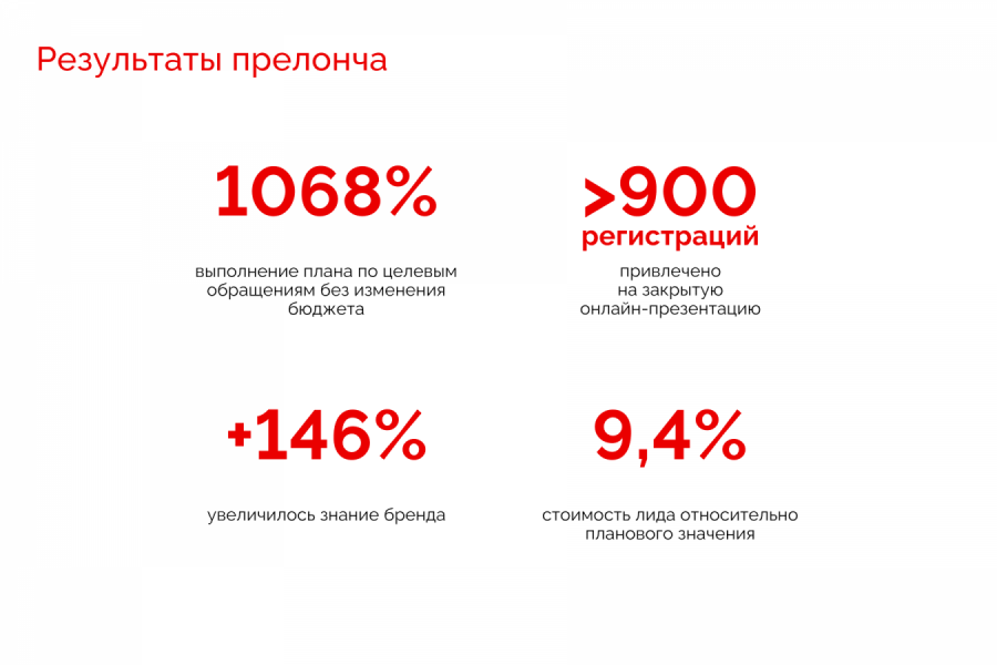 - получить более 900 регистраций на закрытую онлайн-презентацию проекта;