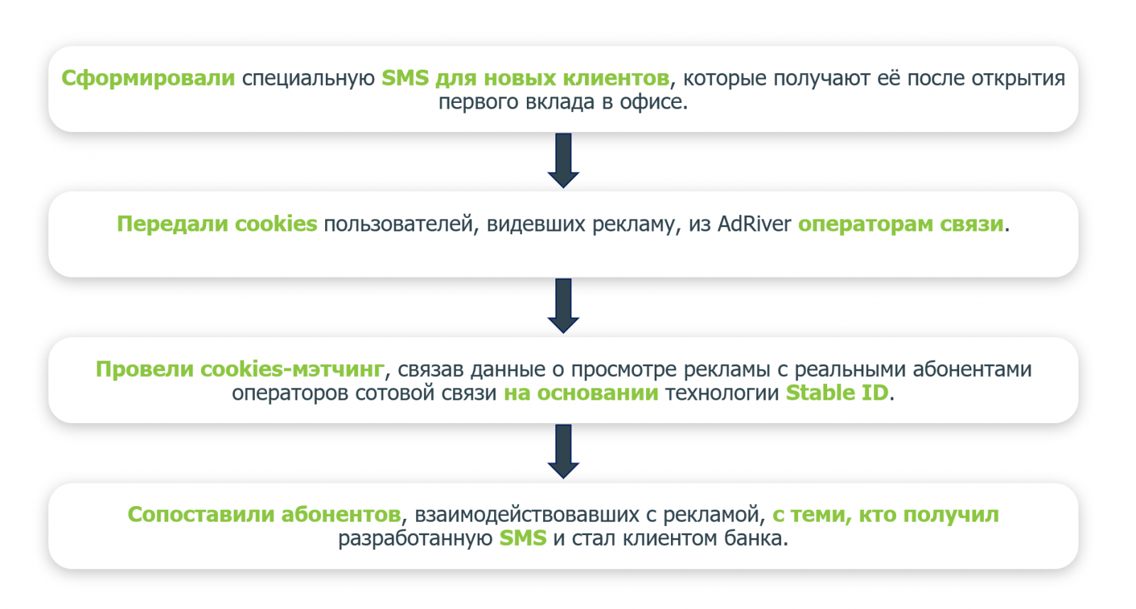 Я, всегда работающий в Data Driven подходе, очень долго искал методологию подсчёта именно влияния диджитал медиаканалов на офлайн в условии тех ограничений, которые есть в банках. Мы придумали совершенно новую механику, на основе перспективной технологии Stable ID.
