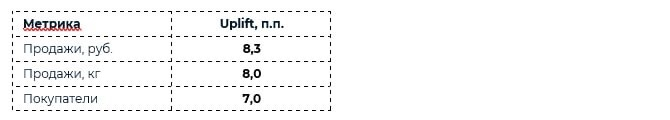 Основным индикатором успешности рекламной кампании стал результат по ROI, который составил 158%, следует из отчета партнера бренда «Белебеевский» команды Dialog.X5/Targeting. Также данная кампания обеспечила uplift в продажах (кг) на 8 п.п. Результаты по другим метрикам, определяющим для бренда успешность кампании, были сопоставимы бенчмарку X5 Group или выше этого показателя (успешным для X5 Group считается uplift в 5−7 п.п.).
