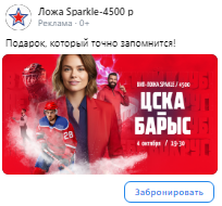 При создании креатива команде важно было передать эмоции и отразить всю необходимую информацию. Изначально она разработала различные варианты сочетаний визуалов и офферов. Затем провела A/B-тесты, на основании которых выбрала самые эффективные объявления. Наибольшей популярностью пользовались те, где наглядно была показана цена сертификата на VIP-места.