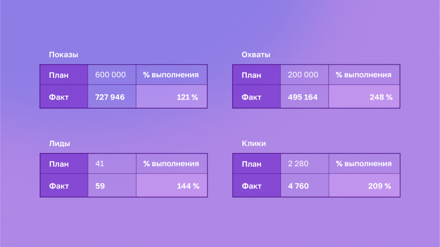 - Подготовили отчет по результатам кампании, включая показатели охвата аудитории, уровень взаимодействия, конверсии и поведение целевых клиентов на сайте.