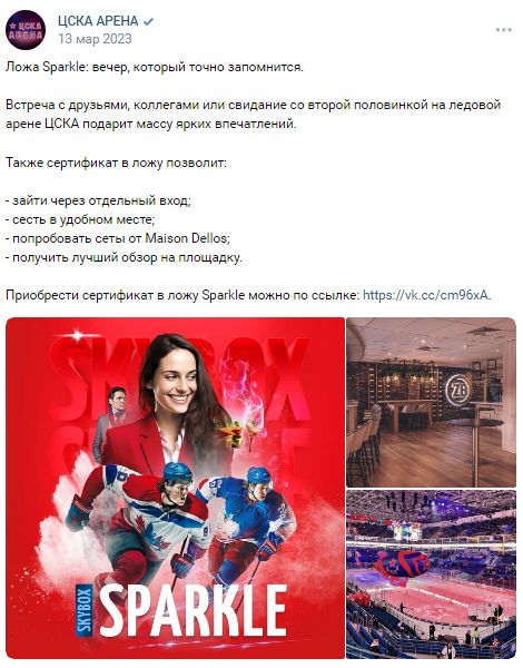 Специалисты решили воспользоваться передовыми технологиями искусственного интеллекта, чтобы выделить объявления среди других сообщений. Яркая графика отвечала за эмоциональную составляющую, а также транслировала главные преимущества нахождения в VIP-ложе спортивной арены. По словам представителей агентства, реклама на странице VK привлекает внимание: пользователи активно взаимодействуют с контентом, выражают свою вовлеченность через лайки и комментарии, переходят по ссылке, чтобы попасть на сайт и оставить заявку.