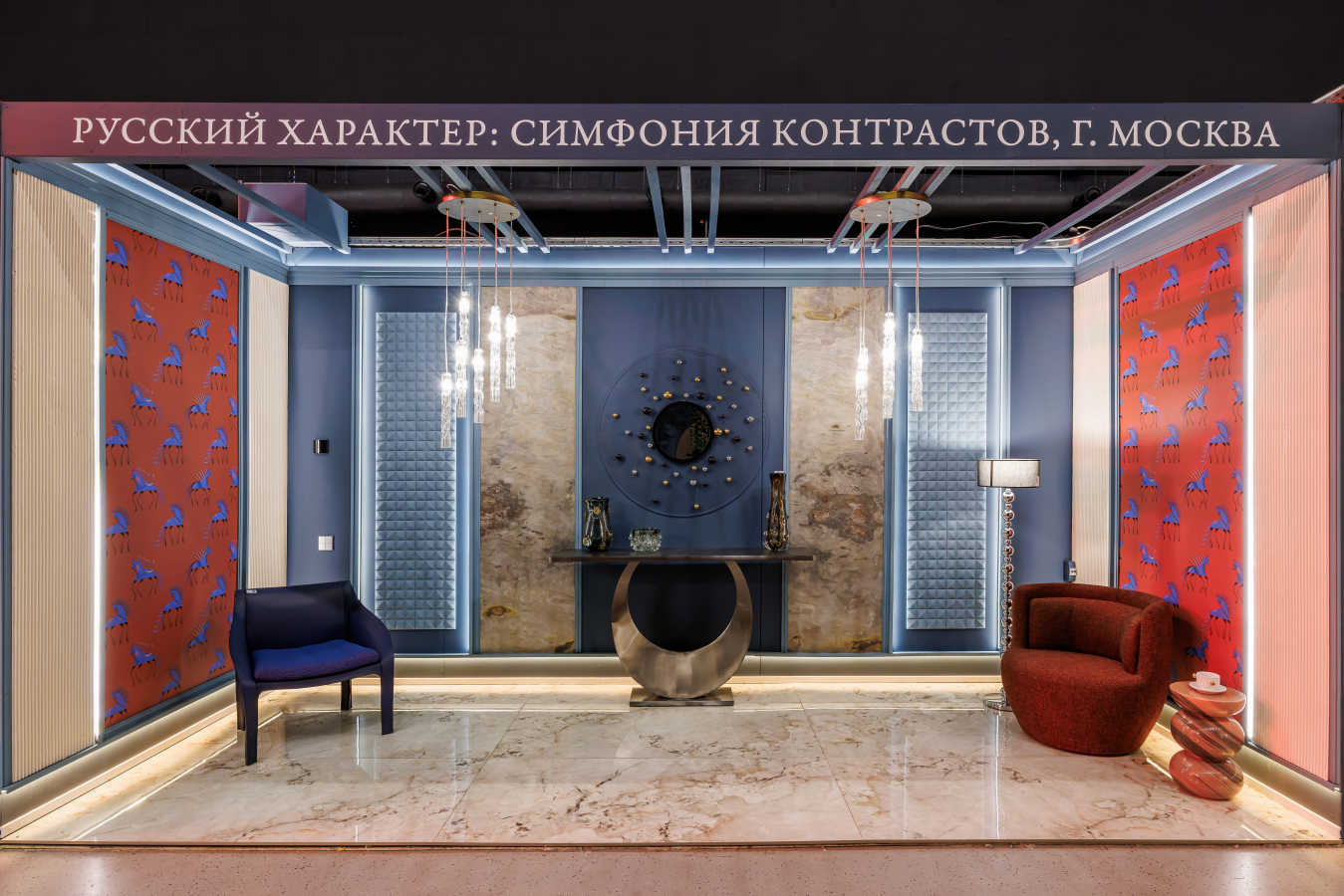 Компания Estima вдохновляется творчеством дизайнеров и поддерживает современные тенденции в российском дизайне. На выставке мы стали партнерами двух дизайнерских капсул, где предложили два совершенно разных решения: яркое акцентное панно Ametis Exotica для капсулы «Русское узорочье» и более спокойное и выдержанное решение для капсулы «Русский характер», где был представлен керамогранит Onlygres, воспроизводящий рисунок мрамора.