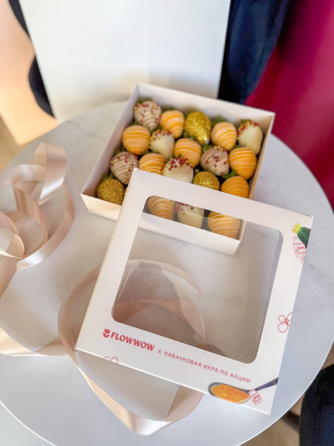 Срочное производство дополнительной упаковки. Мы не ожидали, что товары разойдутся так быстро, поэтому брендированная тишью для букетов и коробки для клубники закончилась почти сразу. Пришлось срочно искать типографию, которая напечатает новую партию за выходные, и быстро развозить ее по производителям.