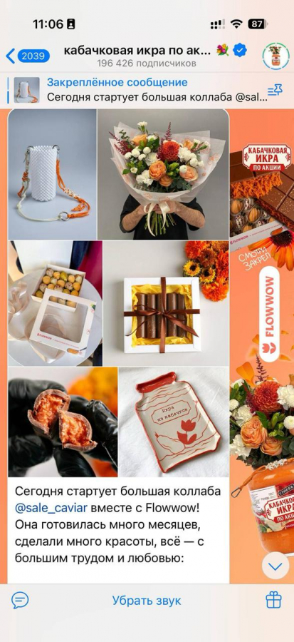«Кабачковая икра» быстро согласилась на коллаборацию. Для Telegram-каналов это возможность укрепить отношения с подписчиками и повысить их активность. А еще кобрендинговые интеграции позволяют отстроиться от конкурентов и показать себя полноценным медиапроектом, который сотрудничает с известными брендами.